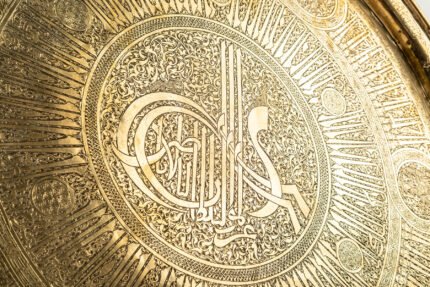 - Surface Contrast: Golden highlights gleam against the darker brass background, echoing the tradition of inlaid Mamluk metalwork.