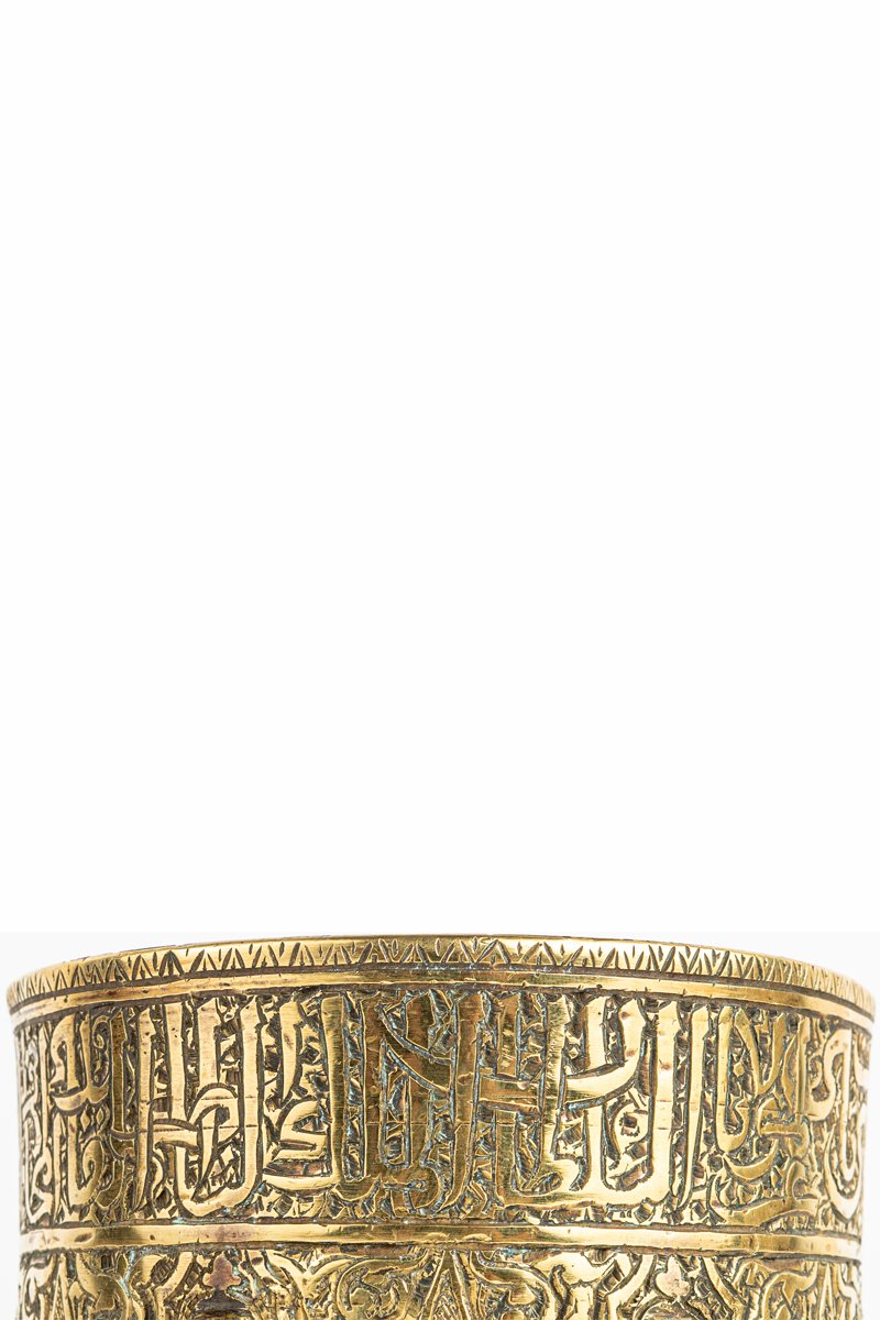 - Mortar Body: The wide cylindrical vessel is adorned with geometric interlace and calligraphic bands, binding symmetry with royal proclamation.